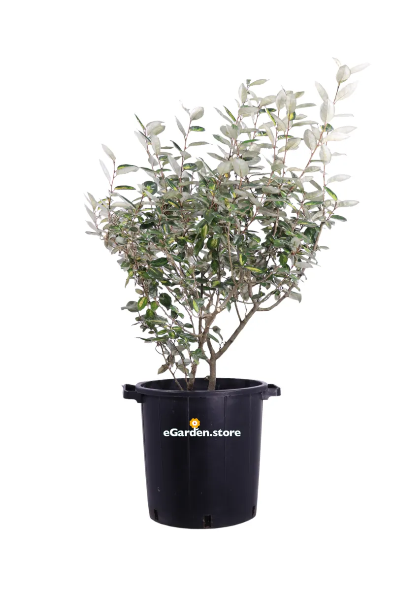 L’Eleagnus X Ebbingei Viveleg è una pianta da esterno ibrida appartenente alla famiglia delle Eleagneaceae. Si tratta di un arbusto sempreverde con portamento eretto ed espanso che può raggiungere anche 4 metri di altezza; presenta un tronco di colore bruno chiaro, variamente ramificato e con foglie di forma ellittica o lanceolata di tonalità verde scuro con variegatura oro lungo i bordi. La fioritura avviene in tarda estate ed inizio autunno con la produzione di piccoli fiori profumati di colore bianco/crema. Pianta facile da coltivare che non richiede particolari cure oltre ad essere resistente alle basse temperature apprezzata sia per il fogliame che per la copiosa fioritura, si presa bene come pianta ornamentale per la realizzazione di siepi, bordure ma anche come singolo esemplare in piena terra o in contenitore; necessita di messa a dimora in luoghi soleggiati con una buona adattabilità in zone di mezz’ombra. E’ consigliato l’utilizzo di buon terriccio universale dotato di ottimo drenaggio, mentre le innaffiature devono regolari in estate3 e diminuite nei mesi più freddi da effettuare sempre a substrato asciutto ed evitando la formazione di ristagni.
